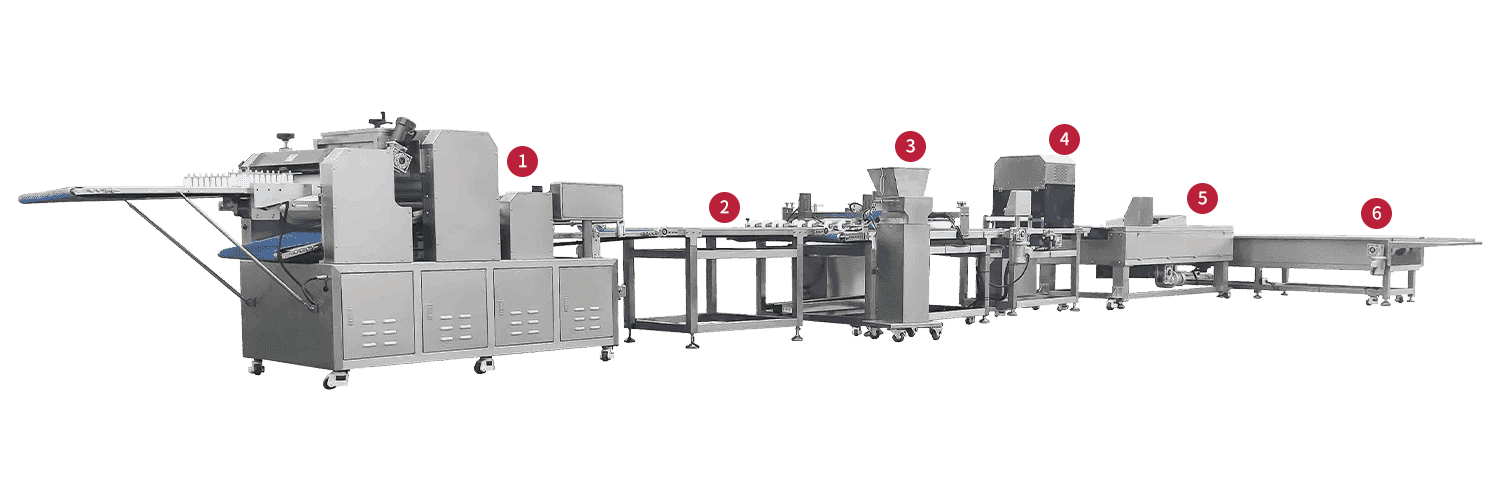 Linia produkcyjna składa się z maszyny do formowania chleba do ciasta ST-868-600, czterokanałowej maszyny do przesyłania, czterokanałowej maszyny do walcowania mąki, czterokanałowej maszyny stężenia, podwójnej serwotrzewnej chleba i CT-WP500